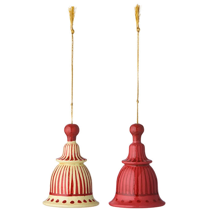 Set of 2 papier mâché Christmas bell ornaments.