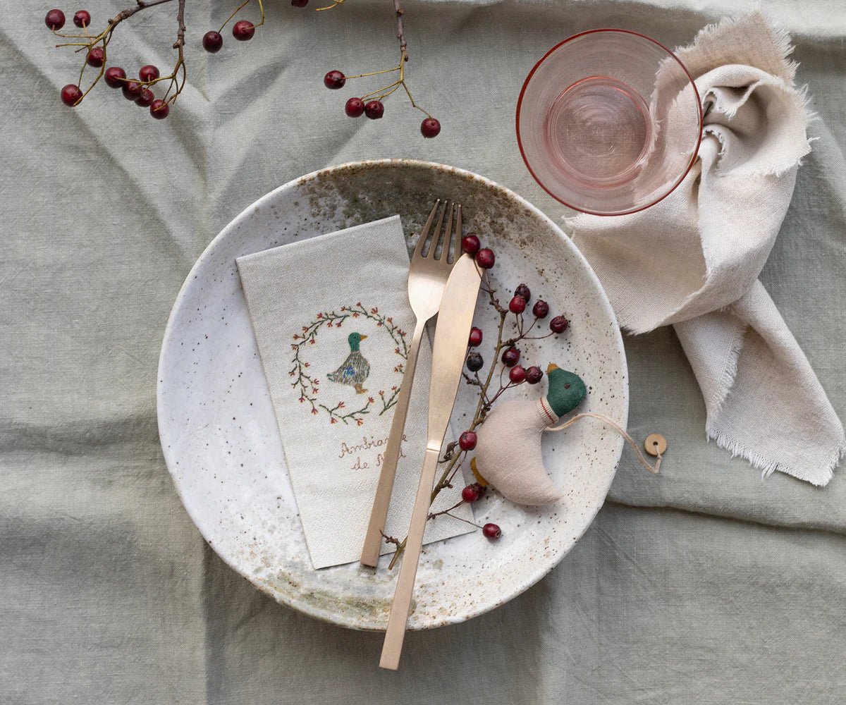 The decoration on this napkin started with Dorthe Mailil's personal embroideries. After a graphical process the napkins got a beautiful expression and the atmosphere of Christmas is complete. The package contains 16 napkins.