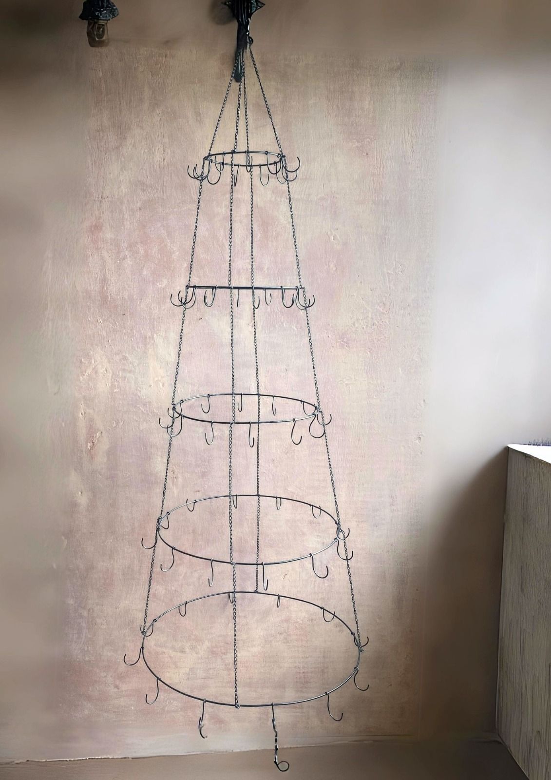 Delightfully practical metal hanger in an elegant brass finish for all the treasures ands ornaments. This clever design folds flat for shipping, then easily assembles when you're ready to use it. A stylish storage solution that combines functionality in your store presentation. Or decorate it with some Christmas greens and your customers will have an alternative Christmas tree.
