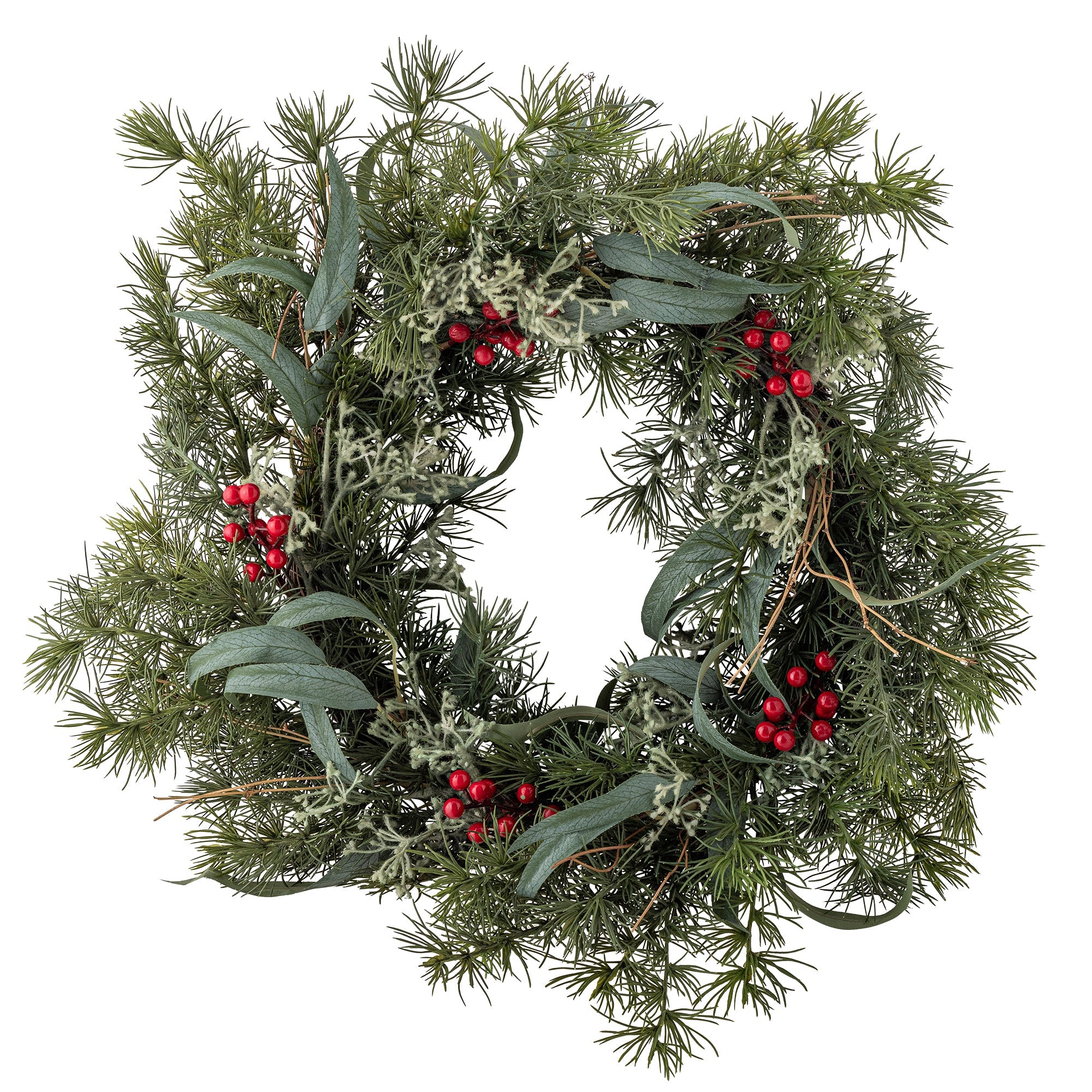 The Pine Wreath by Bloomingville is composed of artificial fir branches and decorative red berries, instantly adding a Christmas spirit to any room. It is ideal for hanging on the front door or as a stylish wall decoration, creating a festive atmosphere without the need for maintenance.