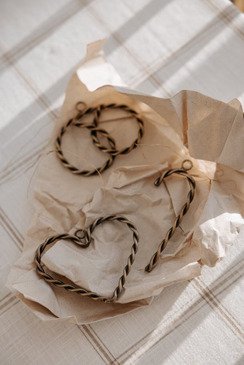 Decorative pendant in brass, in the shape of a pretzel. Easy to hang on the Christmas tree using the included brass wire. It can also be used as a festive detail on a wreath, a beautiful pendant in the window or as a unique accent on gift boxes.