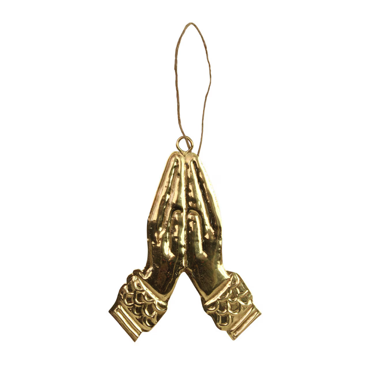 Small decorative ornament in brass, in the shape of two hands. Easy to hang in the tree, using the included brass wire. It can also be used as a festive detail on a wreath or as a beautiful ornament in the window.