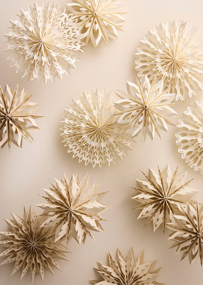 Our poetic paper decorations are laser-cut in India, allowing for many fine and precise details in the paper. Due to the laser-cutting process, small burn marks may appear on the ornaments. We see these not as flaws, but as distinctive features of the unique production method.