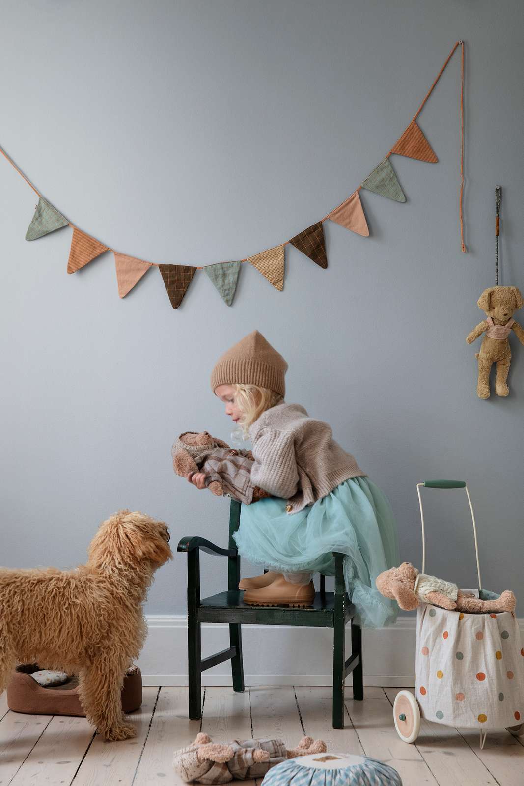 Give your home a festive look with this garland made in the most beautiful colour combination. The flags have an exclusive finish, and the garland will be decorative anywhere you place it. The garland has 10 flags, and the total length is 2,8 m.